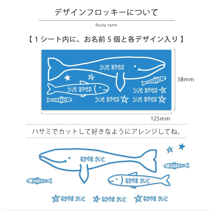 【商品について】 ■デザインフロッキーの文字の大きさ 【文字高】約5mm × 15片入り ■ひらがな・カタカナ・数字・アルファベット10文字程度 ※文字が小さくなりますので、漢字には対応出来ません。